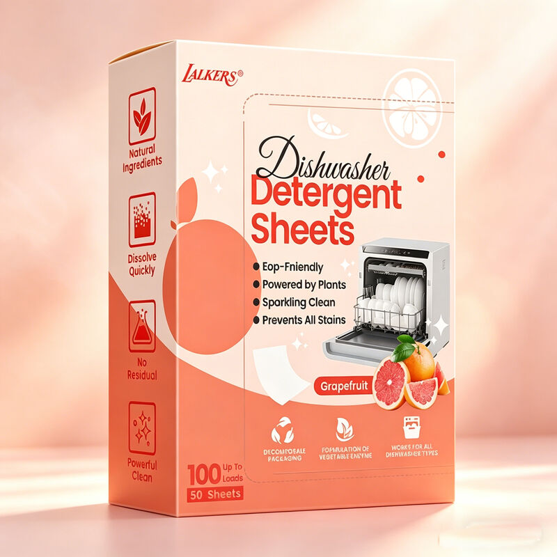 Premium dissolvable dishwasher sheets that dissolve completely in water to deliver powerful cleaning throughout the wash cycle. Advanced film material holds active ingredients firmly and releases them steadily for thorough dish cleaning.